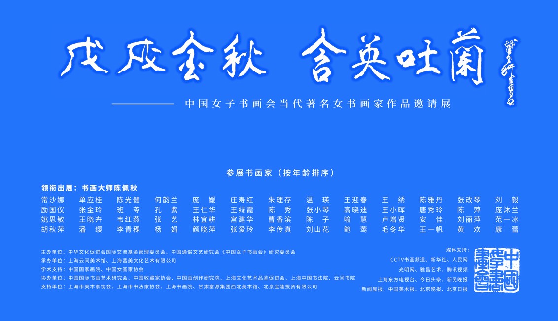 金风过沪,双节叩门。秋日里的上海云间美术馆,将迎来一场特殊的视觉盛宴。由中华文化促进会国际交流基金管理委员会、中国通俗文艺研究会《中国女子书画会》研究委员会主办的“戊戌金秋-含英吐蘭——中国当代著名女书画家作品邀请展”将于9月26日下午三点盛大开幕。