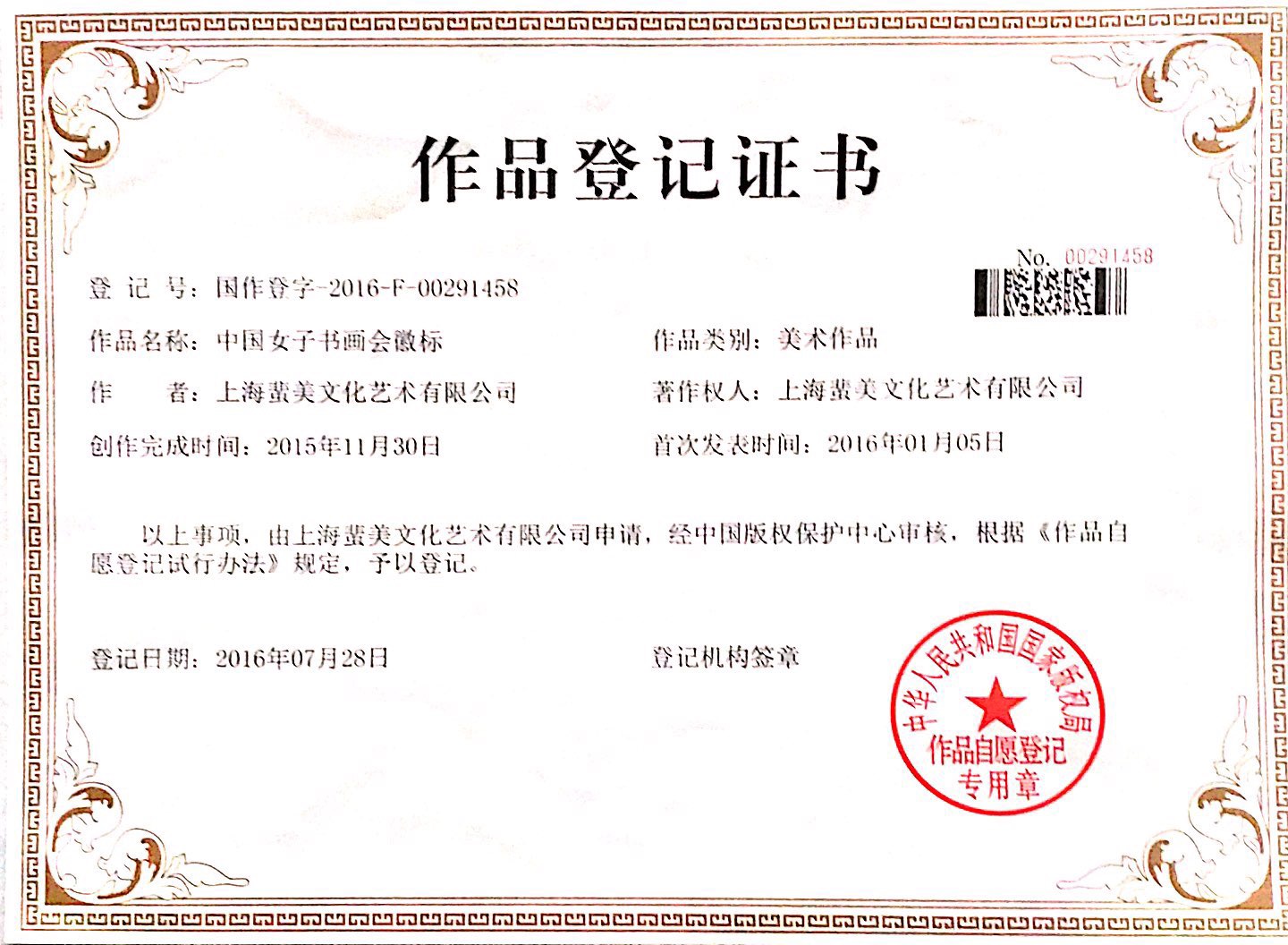 (中国女子书画会徽标登记书)