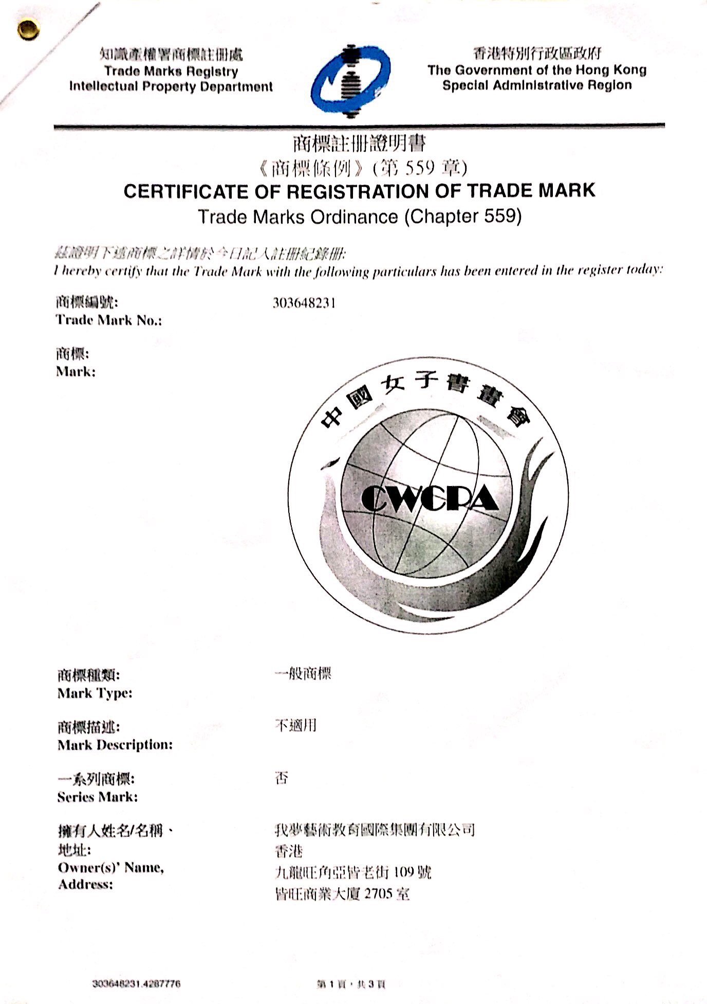 (中国女子书画会在香港注册的商标)