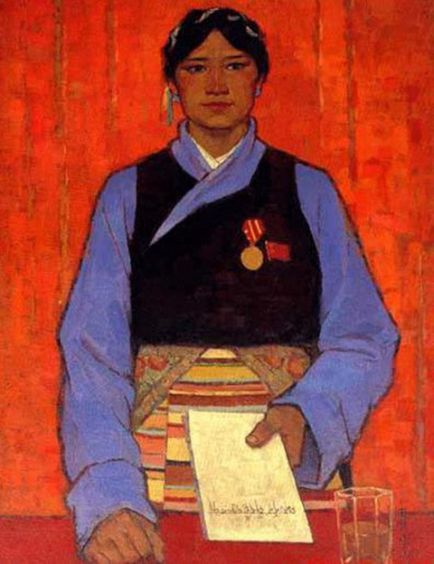 『代表会上的女委员』(油画,1962年赵友萍作),“女委员”象征着毛泽东时代的妇女所获得的一种政治身份,“代表会”是决策国家大事的权力机构,身着藏服的藏民以“女委员”的身份参与国家大事的决策,充分显示了妇女真正当家作主的社会地位。。