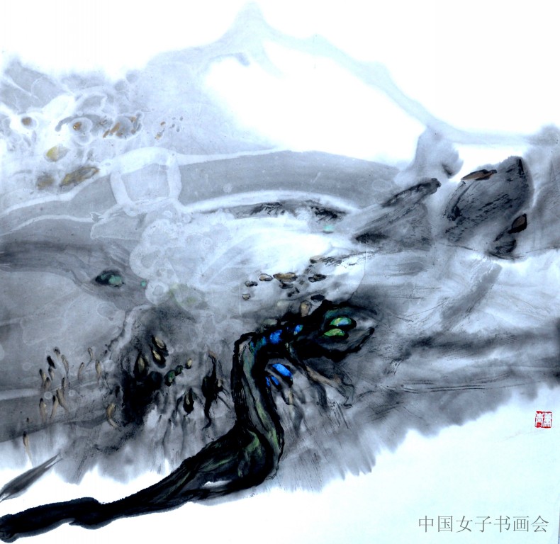 作品以水墨为主,融入西方的抽象元素,略施丹青,在黑白、浓淡之间,表现湖光山色、烟云变幻的朦胧美即梦幻般的景象,同时也追求一种具有音乐般的旋律、节奏美,力求诠释“大象无形”的中国美学,希望带给观众无尽的遐想。