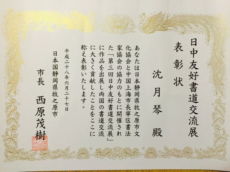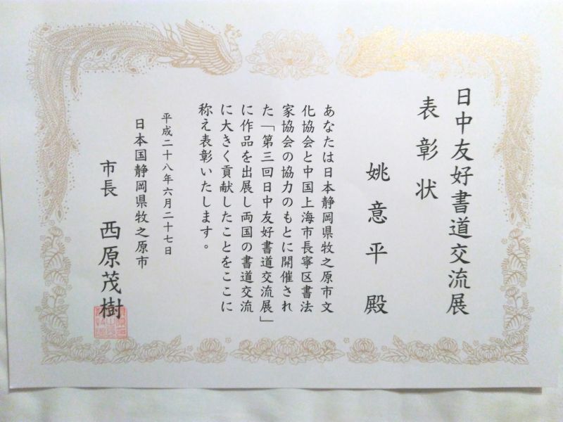 由中国上海市长宁区书法家协会,日本牧之原市、牧之原市文化协会、全日本华人书法家协会、联合主办的“第三回中日书道交流展”于6月27日~6月30日在日本牧之原市举行。中日两国书家们在加强书道交流和学习的同时,更促进了中日两国人民的民间友好往来,促进了两国民间艺术的共同发展。我会姚意平、沈月琴二位书法家的书法作品分别在此次活动中展出,为中国传统书法文化走出国门贡献微薄之力。